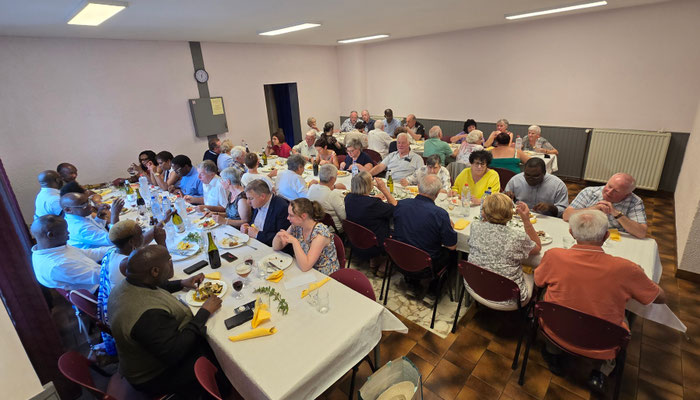 Après le verre de l’amitié offert à la sortie de l’église, les amis de l’abbé et les responsables de l’Unité Pastorale ont partagé un repas convivial dans les locaux du Cercle Saint-Remy.