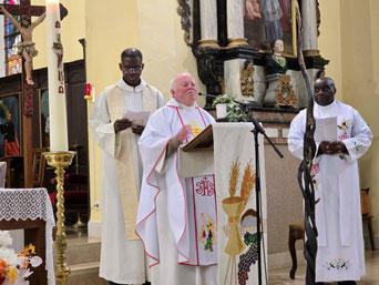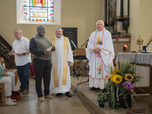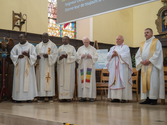 Lors de cette cérémonie, les membres de l'équipe pastorale ont présenté aux fidèles des sept paroisses les objectifs prioritaires qu'ils s'apprêtent à proposer à l'approbation du conseil pastoral lors de l'assemblée du 13 septembre à Halanzy.
